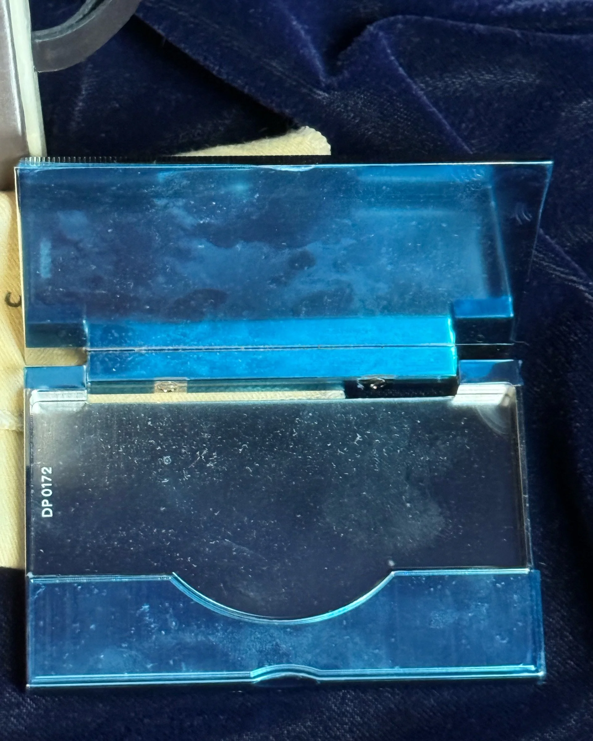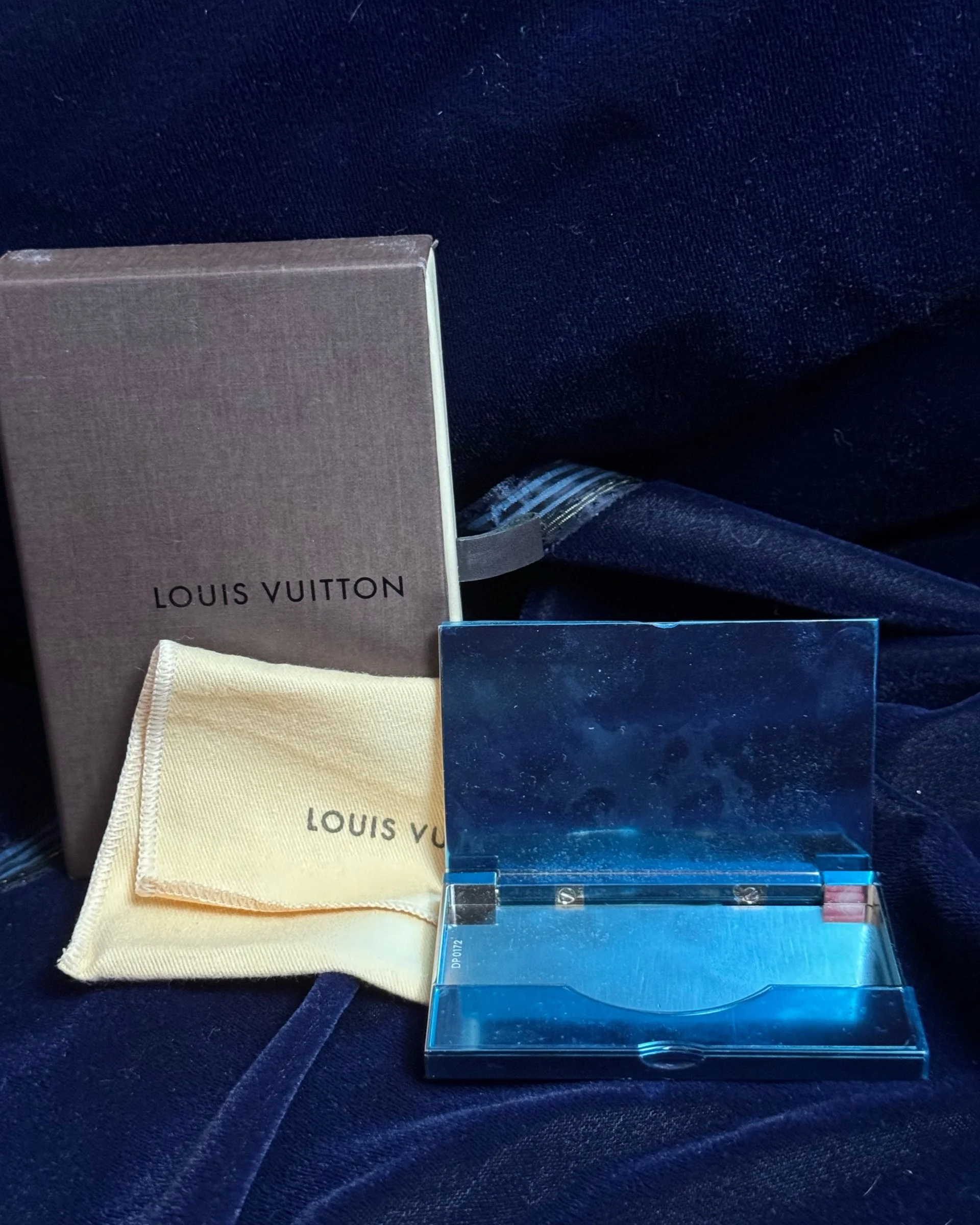 This Louis Vuitton Metal blue and silver card case is perfect for business cards and credit cards. It comes with Box and Dustbag.
