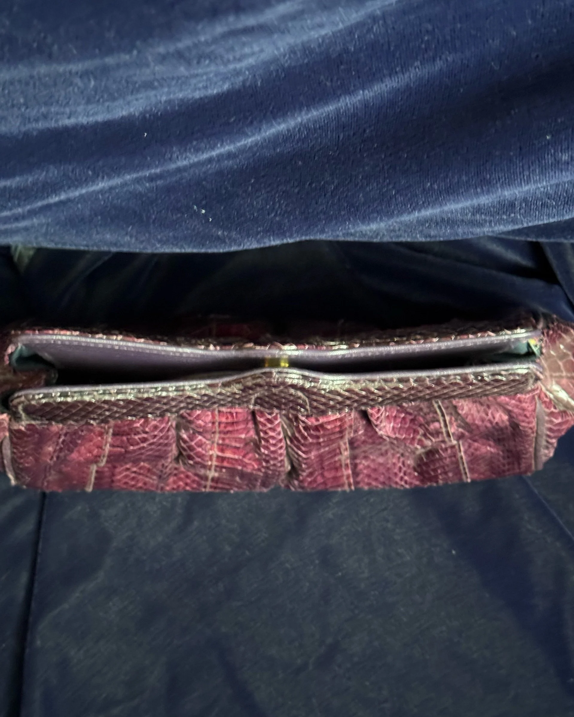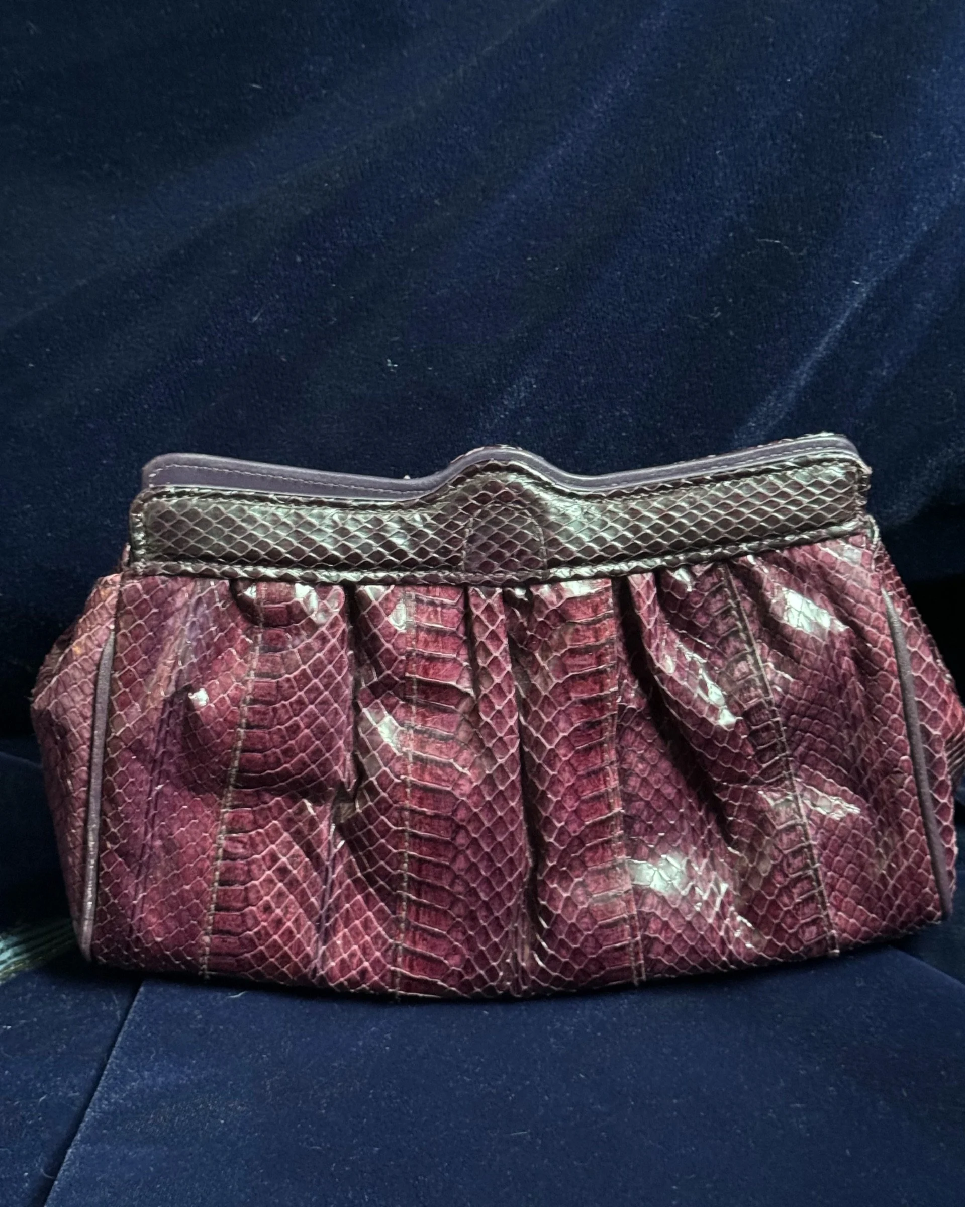 This is vintage snakeskin bag from Neiman Marcus. This can be worn as a shoulder strap or as a clutch. It’s perfect to fit all your essentials and a true piece of history.